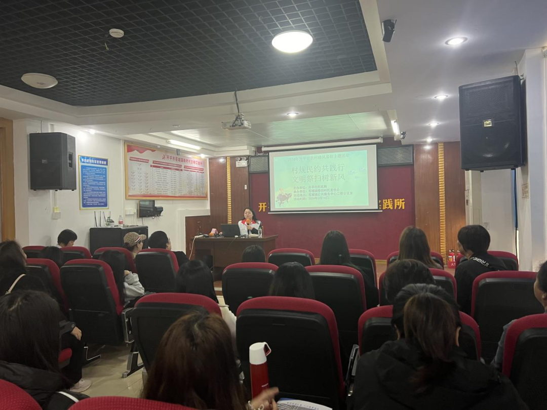 民政局的指导下,苍城镇楼田村委会开展了“村规民约共践行,文明祭扫树新风”的移风易俗主题活动。 会上,主讲人详细讲解了不文明祭祀的安全隐患,并引导村民在清明祭祀时要采取文明、环保的祭祀方式,号召不焚香烧纸,禁止燃放烟花爆竹,避免引起火灾。同时,提倡鲜花祭祀、网上祭祀、家庭追思等现代祭祀活动,以精神传承代替传统实物祭祀。主讲人循循善诱的倡导,让“无烟上坟”“文明祭祖”的意识深入人心。 此外,志愿者们向村民发放文明祭祀倡议书,将文明祭祀以村规民约的形式规范起来,进一步把移风易俗理念传播到村民心中。 本次宣传活动提高了群众文明祭扫的意识,村民纷纷表示会用文明的方式来表达对先辈的怀念之情。让我们行动起来,以文明祭祀弘扬孝义文化,过一个绿色、文明、低碳、安全的清明节。