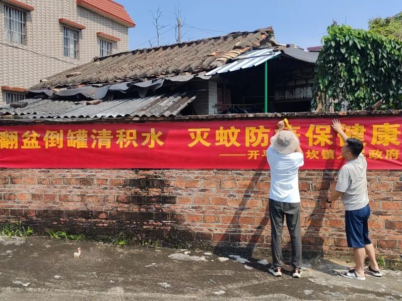 新建村开展环境卫生整治,喷药消杀灭蚊 中庙村开展环境卫生整治,喷药消杀灭蚊 南楼村开展环境卫生整治,喷药消杀灭蚊 四、动员统一灭蚊消杀 根据市统一部署,动员广大居民配合于7月28日18时一起在家中点燃蚊香、蚊片,赤坎华侨古镇、开平不夜城(梦回开平-侨海华韵)等景区同时采取点燃蚊香、无人机喷洒灭蚊药物等措施对古镇及周边场所进行灭蚊消杀。 居民们点燃蚊香进行灭蚊消杀 赤坎华侨古镇进行灭蚊消杀 赤坎华侨古镇无人机喷洒灭蚊药物 五、广泛宣传防蚊知识 赤坎镇组织印发宣传海报400余张和横幅25余条、录制宣传音频发给个村(社区)开展防控登革热、基孔肯雅热知识宣传,积极引导群众全面清理卫生死角和积水环境,阻断疾病传播途径,形成群防群控的强大合力。