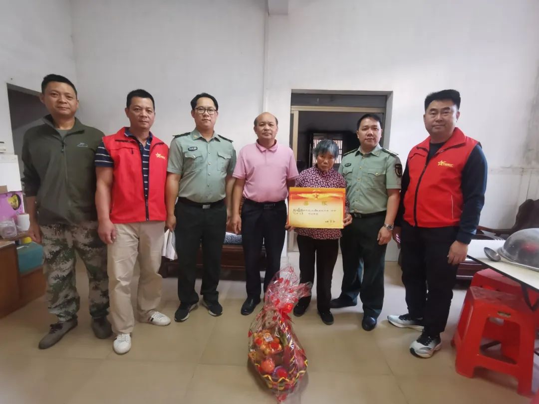 近日,赤坎镇武装部、退役军人服务站和村委会共同为在部队荣获“四有”优秀士兵家庭送上立功喜报和慰问品,营造“一人参军,全家光荣”的社会氛围,及时传递镇党委、政府对军人家属的深切关怀与崇高敬意。赤坎镇党委副书记、武装部部长谭永健带队参加活动。