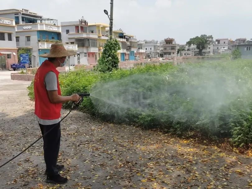 塘美村开展环境卫生整治,喷药消杀灭蚊