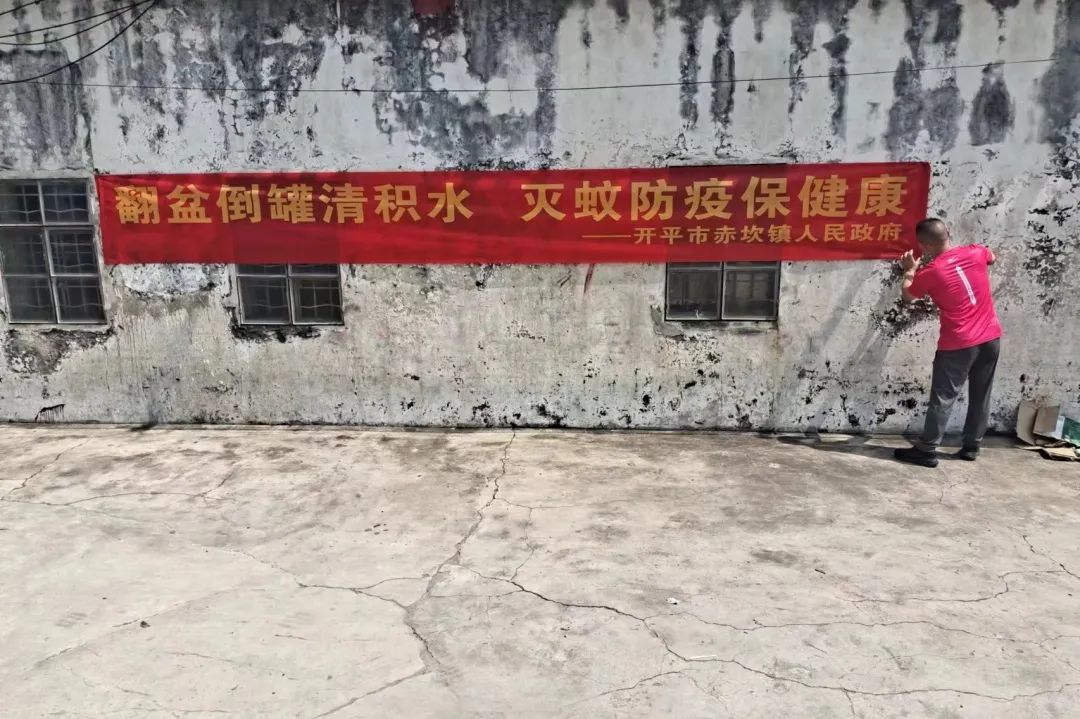新建村开展环境卫生整治,喷药消杀灭蚊 中庙村开展环境卫生整治,喷药消杀灭蚊 南楼村开展环境卫生整治,喷药消杀灭蚊 四、动员统一灭蚊消杀 根据市统一部署,动员广大居民配合于7月28日18时一起在家中点燃蚊香、蚊片,赤坎华侨古镇、开平不夜城(梦回开平-侨海华韵)等景区同时采取点燃蚊香、无人机喷洒灭蚊药物等措施对古镇及周边场所进行灭蚊消杀。 居民们点燃蚊香进行灭蚊消杀 赤坎华侨古镇进行灭蚊消杀 赤坎华侨古镇无人机喷洒灭蚊药物 五、广泛宣传防蚊知识 赤坎镇组织印发宣传海报400余张和横幅25余条、录制宣传音频发给个村(社区)开展防控登革热、基孔肯雅热知识宣传,积极引导群众全面清理卫生死角和积水环境,阻断疾病传播途径,形成群防群控的强大合力。
