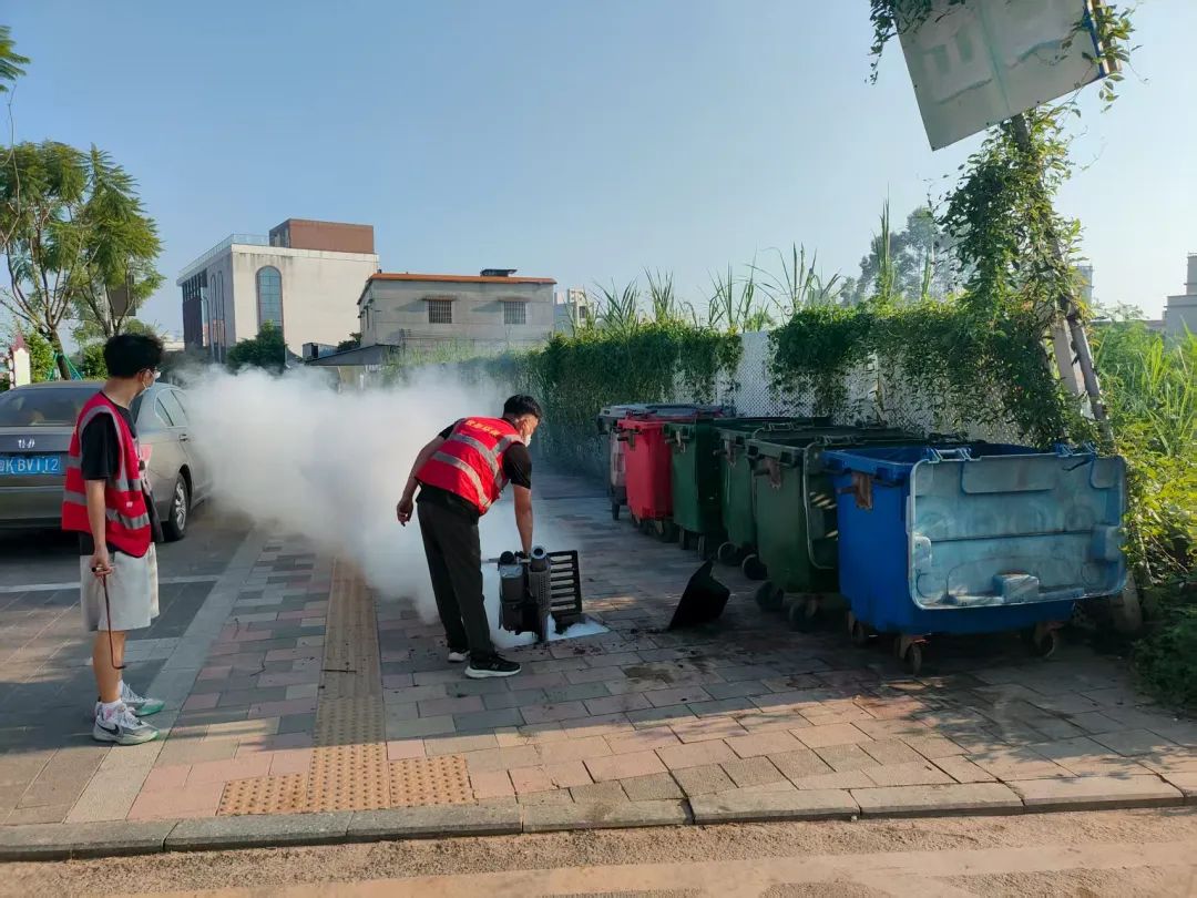 赤坎镇对圩镇的农贸市场、商业街、居民区和工地进行全面消杀灭蚊。