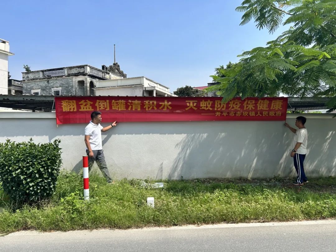 赤坎镇组织印发宣传海报400余张和横幅25余条、录制宣传音频发给村(社区)开展防控登革热、基孔肯雅热知识宣传积极引导群众全面清理卫生死角和积水环境,阻断疾病传播途径,形成群防群控的强大合力