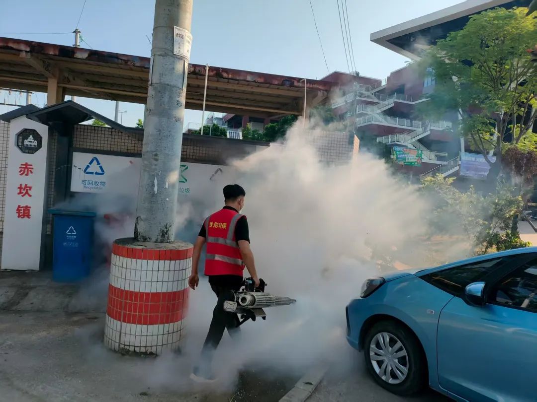 赤坎镇德业路改造提升二期项目建筑工地周边全面消杀灭蚊 三、开展环境卫生整治 深入组织镇村干部开展环境卫生整治,清理房前屋后垃圾杂物,翻盘倒罐清理积水(尤其注意清理雨天后废弃瓦罐、泡沫箱、饭盒和废弃轮胎的积水),喷药消杀灭蚊。