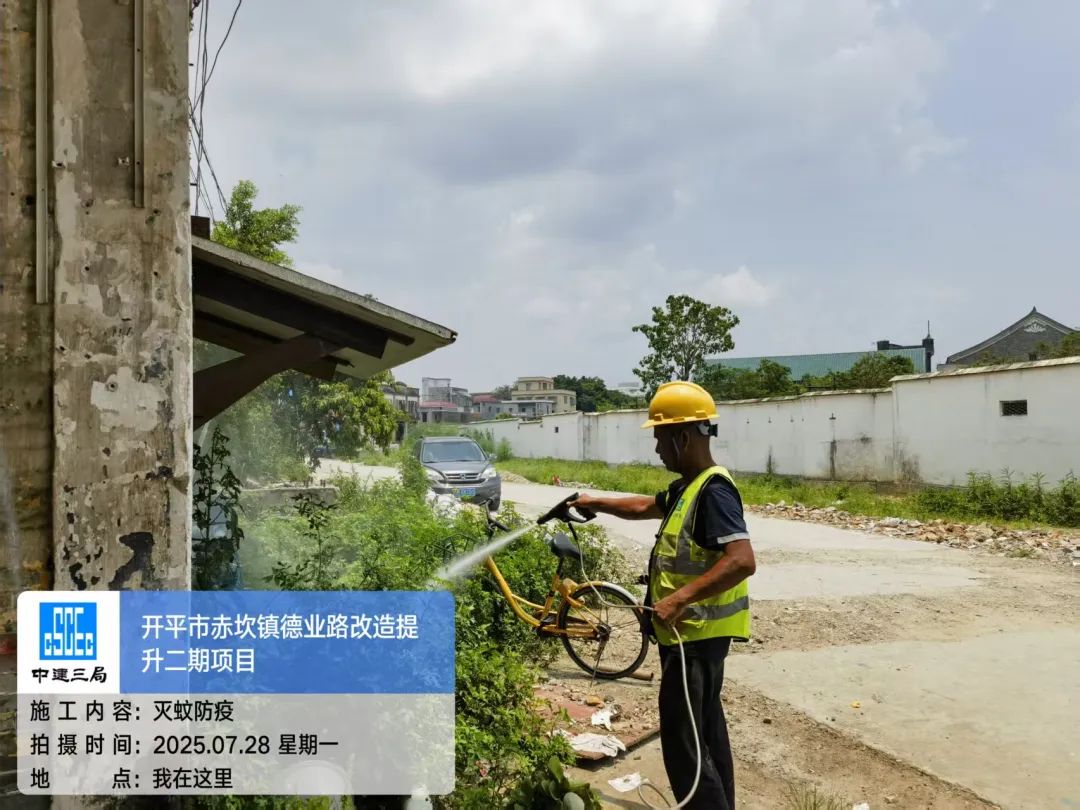 专业消杀,精准除害 每日对景区重点区域进行消杀,包括各酒店民宿入住大堂以及房间、铛铛车、摇橹船、演艺场地、员工宿舍等,对全景区下水道药物投放灭蚊虫卵消杀,每日清扫喷杀积水,死水区域,不间断检查消杀垃圾房、商铺与办公室、未开放区域等,目前全覆盖消杀9次,对卫生死角,空置建筑物消杀50次,覆盖消杀面积约40万平方米,出动消杀人员12人次,每天安排保洁员60多人同步进行下水管道投药,翻盆倒罐检查,共喷洒药物水剂1吨。景区内1270间客房全部完成消杀并放置灭蚊装置。 环境整治,卫生升级 在日常保洁的基础上,加大环境整治力度。及时清扫垃圾、杂草及卫生死角,增加垃圾清运频次,保持环境整洁。 古镇全域,喷杀蚊虫 根据市统一部署,赤坎镇聘请了专业团队,于7月28日夜间至29日凌晨对赤坎华侨古镇、开平不夜城(梦回开平-侨海华韵)景区及周边村居采取点燃蚊香、无人机喷洒灭蚊药物等措施进行灭蚊消杀。7月28日,向古镇周边4个村委会65条自然村发放200盒蚊香,给村民一起点燃蚊香助力灭蚊防疫工作。每一个可能藏有蚊虫的角落都不放过,有效清除成蚊和幼虫隐患,降低蚊虫密度,从源头上减少蚊媒传染病的传播风险。 清理积水,阻断孳生 加强对古镇周边建筑工地的管理,要求施工方及时清理工地内的积水,妥善存放建筑材料,避免形成积水洼,为蚊虫滋生创造条件。 赤坎华侨古镇作为历史文化的瑰宝,赤坎镇不仅注重对古建筑的保护与文化传承,更将游客与居民的健康安全放在首位。在这个蚊虫活跃的季节,我镇将积极开展灭蚊防疫行动,全力为大家打造一个安全、舒适的游览与居住环境。