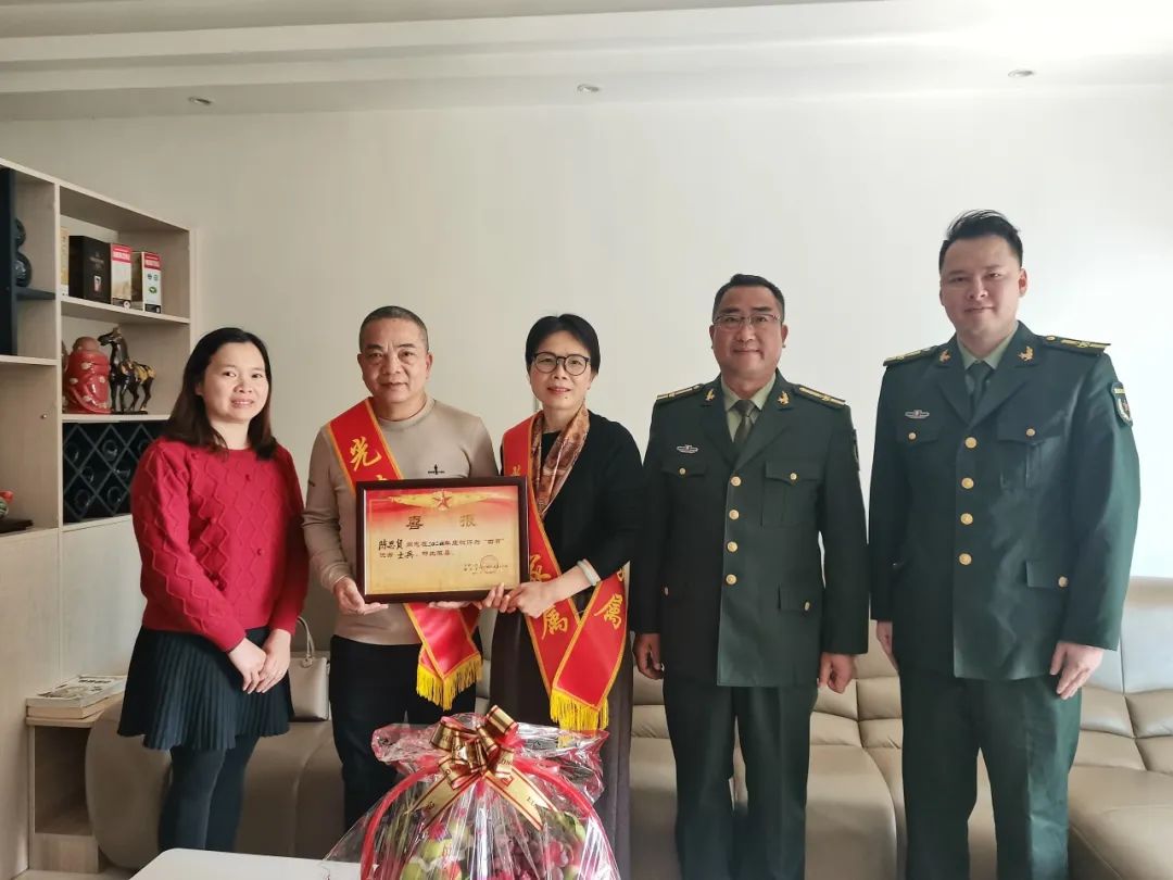 为进一步弘扬拥军优属光荣传统,增强军人军属的荣誉感和自豪感,营造尊崇军人的浓厚氛围,长沙街道为荣获“四有”优秀士兵称号的现役军人家庭送喜报。 1月3日,长沙街道党工委委员、武装部部长何永富率队给“四有”优秀士兵陈思贤和吴梓彬的家庭送去喜报和慰问品,传递党和政府的关怀与温暖。慰问组和军人家属进行亲切交谈,详细了解他们的生活情况,感谢他们为国家和部队培养输送了优秀人才,同时也希望他们一如既往地支持国防和军队建设,继续做好军人的坚强后盾,让军人在部队安心服役、再立新功,为家乡争光! 立功喜报承载着军人的至高荣誉,凝聚着军属的无私奉献。此次送喜报活动,让军人军属共享尊崇荣光,是长沙街道用心用情做好国防教育及双拥工作,积极落实各项拥军优属政策的生动写照。接下来,长沙街道将继续营造爱国拥军良好社会氛围,激励更多优秀青年踊跃参军,鼓励现役军人在部队积极建功立业,为国防事业贡献力量。