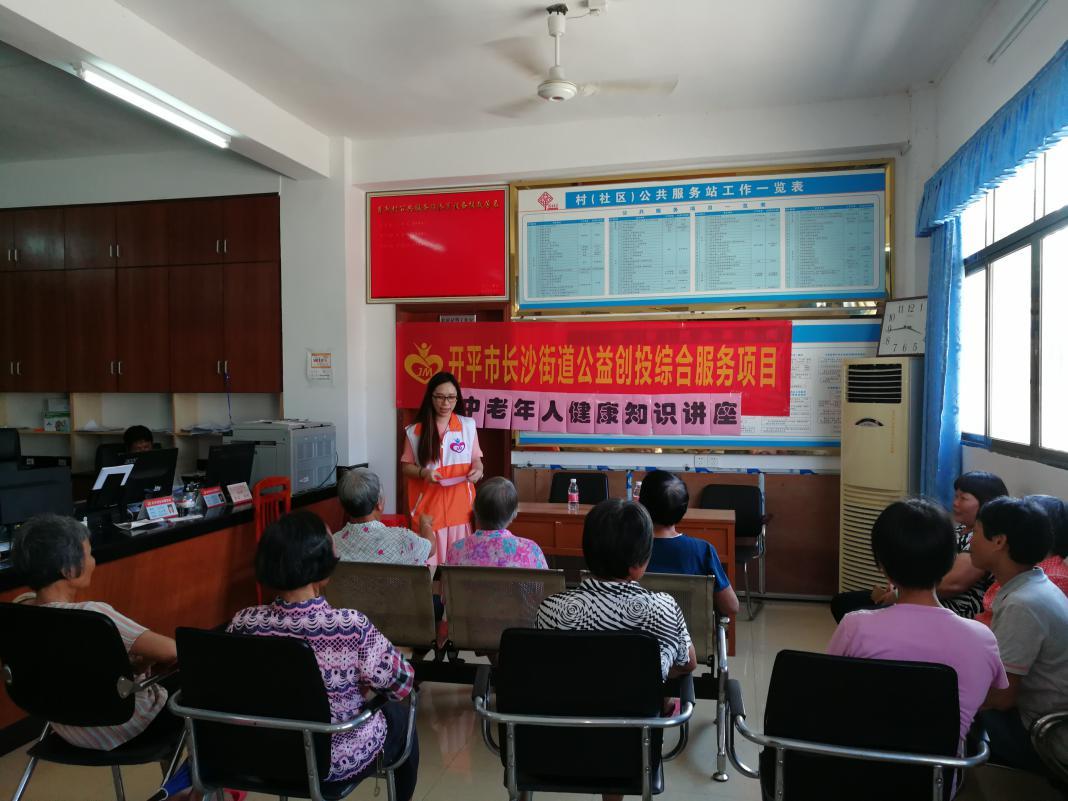 长沙街道公益创投综合服务项目在东升村开展中老年人健康知识讲座。 本次活动有30多名长者报名参加。在活动中,由项目健康宣讲员从夏季良好习惯的养成、体质辩证调理、脂肪肝、夏季饮食的原则等方面深入浅出地讲解老年人夏季养生知识,并与长者们分享了养生保健方面的心得。最后,社工还带来了由素智源斋馆提供的素食点心和长者们进行分享,倡导健康养生理念。 此次健康知识讲座通俗易懂,贴近居民生活,受到了老年人的一致好评。老人们纷纷表示,参加这样的讲座很受益,学到很多预防疾病的知识,又提高了自我保健的意识,对构建健康和谐的家庭具有积极的意义。 健康宣讲员向活动参与者派发健康知识宣传单 健康宣讲员与长者们分享健康养生心得 与长者们分享素食点心