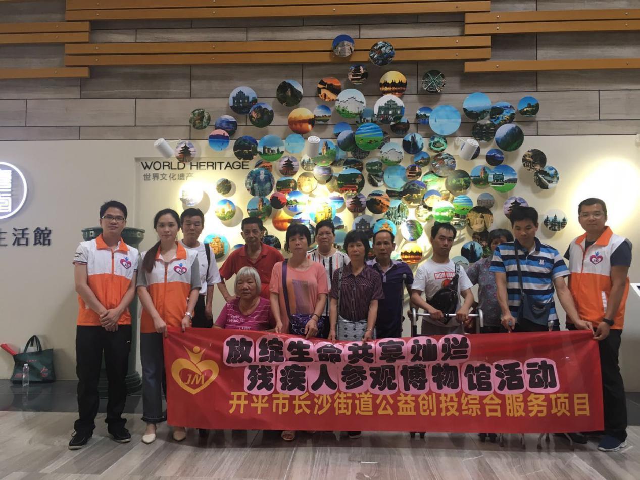 长沙街道公益创投综合服务项目组织辖区多名残障人士及其家属开展了“绽放生命,共享灿烂”参观博物馆拓展活动。 本次活动的服务对象是一、二级肢体残障人士,他们由于身体的不便利,很少有机会出门,平时多数都是呆在家里。社工了解到他们想外出的愿望,于是策划了本次博物馆拓展活动。为了组织好这次活动,惠群社工中心做了周密的准备,安排了社工、志愿者、医护人员全称跟踪,负责陪护照顾。并提前与博物馆沟通,保障服务对象的安全以及活动的秩序。 图:服务对象在聆听经典之声歌曲 在博物馆,专业讲解员带领大家参观了各个展厅,讲述了开平的历史文化,并邀请残障朋友依次体验了馆内的经典声乐播放和“家书”的书写。 图:服务对象在了解初期华人在外“谋生”工具 服务对象在活动中十分投入,也对社工表达了感激之情。他们表示,自己很少能有这样外出游玩的机会,通过这次活动,他们不仅加深了对开平历史文化的了解,增强了归属感,而且还认识了不同社区的新朋友,收获良多。而志愿者则表示,参与这样的公益活动,不仅锻炼了自己,也使他们看到了残障人士的现状和他们身上可贵的正能量,今后他们愿意继续参与志愿服务,帮助有需要的残障人士。 图:服务对象在认真学习开平历史 此次参观活动,不仅让残障人士外出放松了身心,搭建了残疾人这一特殊群体沟通交流的平台,让他们能走出家门,增强他们参与社区文化生活的意识,营造关爱残疾人事业的良好氛围,促进和谐社会的共建共享。