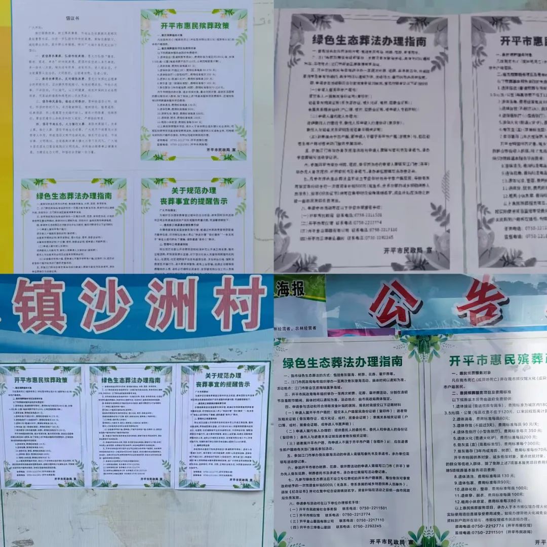 此外,志愿者们还深入社区、村落,通过面对面讲解、发放倡议书和宣传资料等方式,向群众详细讲解殡葬改革的政策法规、文明殡葬的重要意义以及生态殡葬的多种形式。同时,各村(社区)新时代文明实践站还利用LED屏滚动播放文明殡葬宣传标语,利用宣传栏张贴《海棠直播 惠民殡葬政策》《绿色生态葬法办理指南》《关于规范办理丧葬事宜的提醒告示》等宣传资料,积极引导广大群众摒弃陈规陋习,倡树厚养薄葬文明新风。