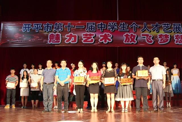 本次比赛分初中组和高中组进行,比赛的项目有独唱、独舞、器乐、绘画、书法等。经过两天紧张、激烈的角逐,初中组各项目一等奖得主分别是:百合初级中学梁旭宁同学(独唱)、百合初级中学周玉玲同学(独舞)、开平二中覃泽轩同学(钢琴)、东河中学黄彦君同学(古筝独奏)、东河中学赖佩君同学(绘画)、金山中学梁杰富同学(书法)。金山中学获初中组团体一等奖,东河中学、港口中学、谭氏中学、百合初级中学获初中组团体二等奖。