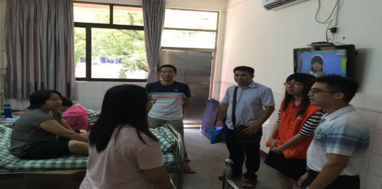 城管局局长罗健华等一行来到赤坎医院探望李碧琴,罗健华同志详细了解了李碧琴的恢复情况及其女儿的读书情况,鼓励她们坚定信心战胜暂时的困难并送上3225元助学济困捐款。