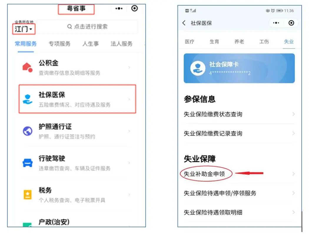 申领截止时间:2020年12月31日 12月31日、12月31日、12月31日截止 申领条件 ①2020年3月至12月,领取失业保险金期满仍未就业的失业人员; ②2020年3月至12月,不符合领取失业保险金条件的参保人失业人员(指参保缴费不足1年或缴费满1年但本人辞职等本人原因失业)。 申领渠道、步骤 不用跑腿!!!失业补助金申领无需现场办理,通过广东省网办平台(//hrss.gd.gov.cn/gdsbfw/)、“粤省事”微信小程序等全程线上办理, 方便快捷。 ①省网办平台:广东省人力资源和社会保障厅网中的“广东社保服务”专栏(//hrss.gd.gov.cn/gdsbfw/) →社会保险网上个人服务(注册或登录) 失业待遇→ 失业补助金申领 →失业补助金申领 进入失业补助金申领页面,选择【受理】按钮,校验通过后可填写相关信息并点击【提交】按钮进行网上申报。 ②“粤省事”小程序:微信搜索 “粤省事”微信小程序→社保医保→失业→失业保障→失业补助金申领,图例如下: