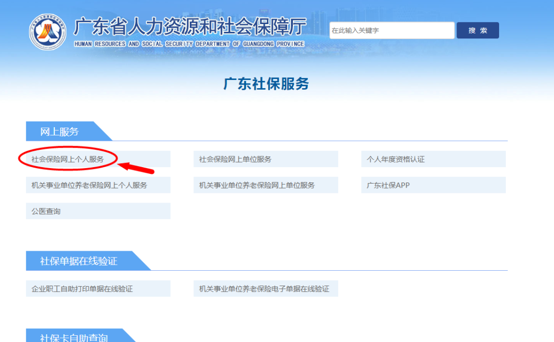 ①省网办平台:广东省人力资源和社会保障厅网中的“广东社保服务”专栏(//hrss.gd.gov.cn/gdsbfw/) →社会保险网上个人服务(注册或登录)