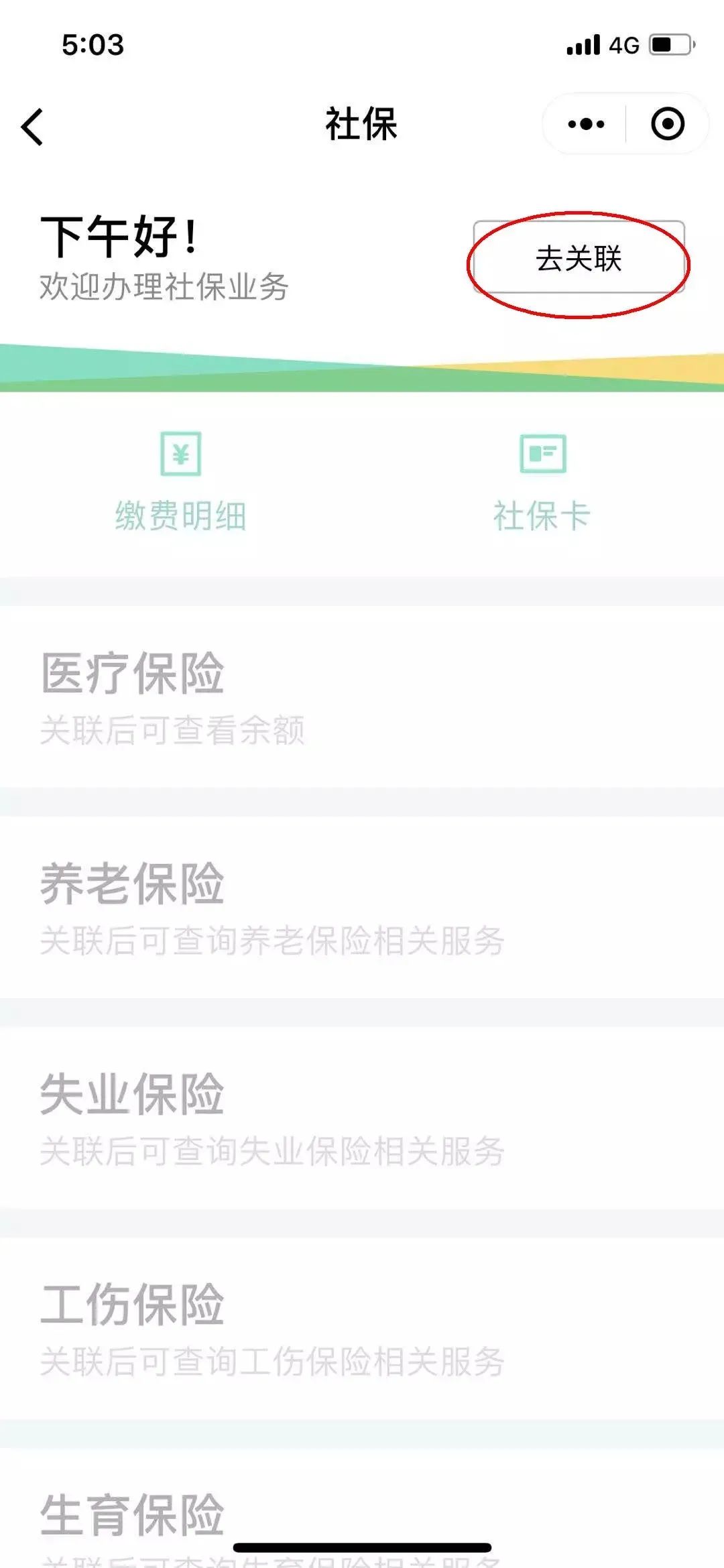 在社保服务界面点击右上角“去关联”→授权关联。在环节中,请注意核对并确认关联本人的社会保障卡。请注意!关联这一步比较重要!一定要关联成功才可以做以下认证操作。