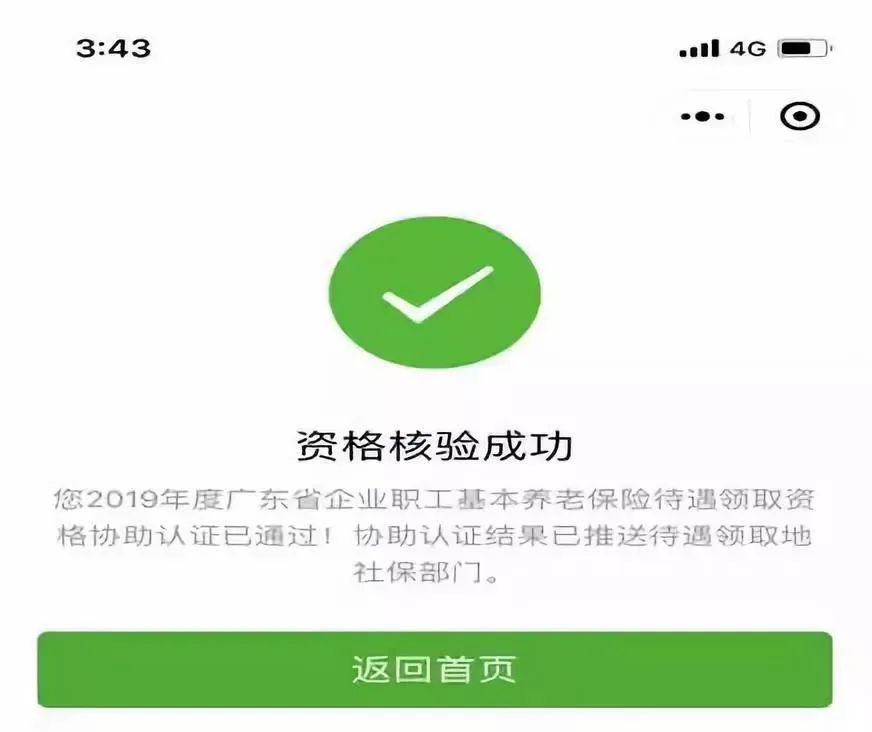 当显示认证结果为“资格核验成功”,即表示本年度本次领取资格认证已通过,认证结果将会反馈到领取地的社保经办机构。
