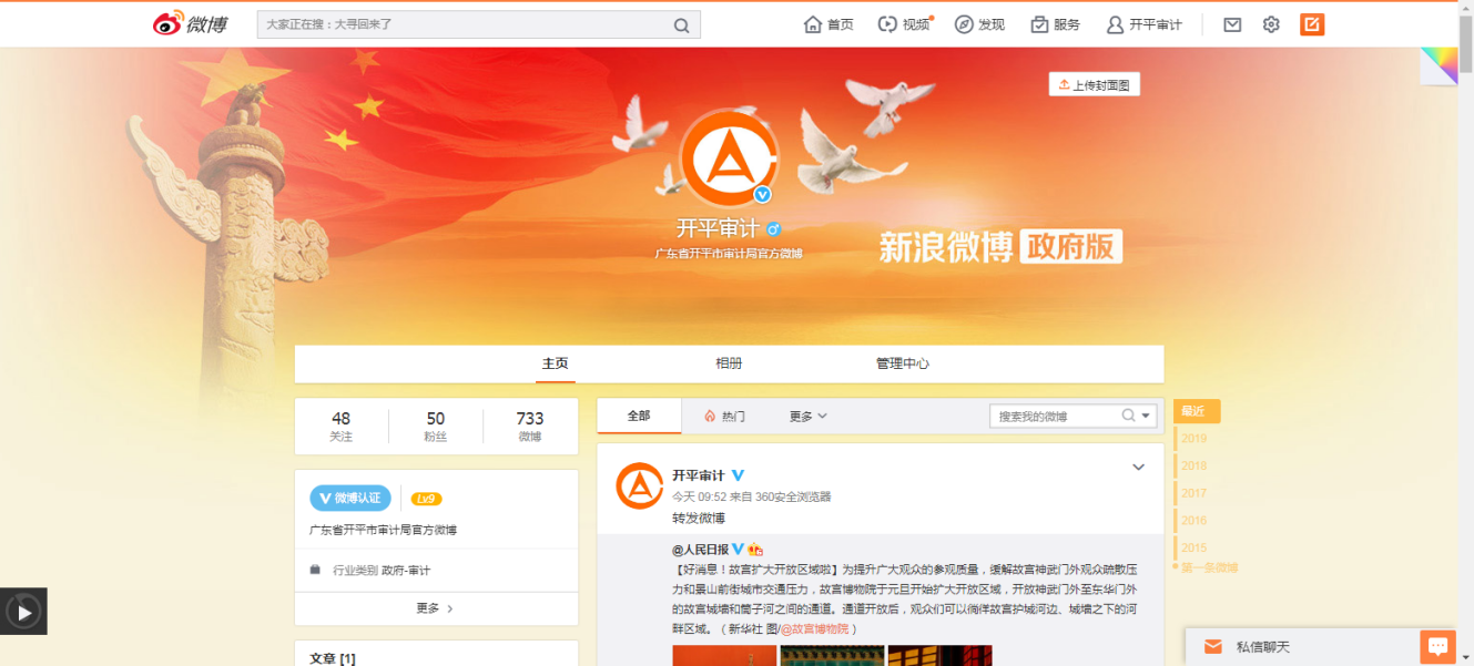 “开平审计”官方微博共发布微博200条。