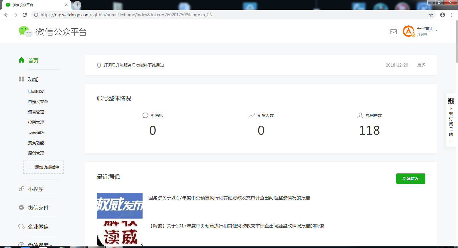 “开平审计”微信公众号共发布微信47条。