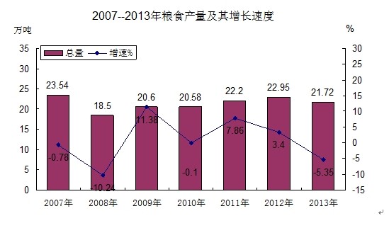 注:1、本公报中2013年数据为初步统计数,统计图中2007--2012年数据为年报数。