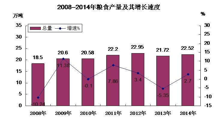 标兵文明单位495个。 注:1、本公报中2014年数据为初步统计数,统计图中2008--2013年数据为年报数。 2、公报中的地区生产总值、各产业增加值绝对数按现行价格计算,增长速度按可比价格计算。 3.国家统计局实施了城乡一体化住户调查改革,2014年按照新的调查口径对外发布城镇和农村常住居民人均可支配收入数据。由于新老调查方案在调查范围、调查对象、城乡划分标准、样本抽选、计算和汇总方式、指标口径等方面变化较大,改革后新口径和旧口径数据存在不可比的差异。