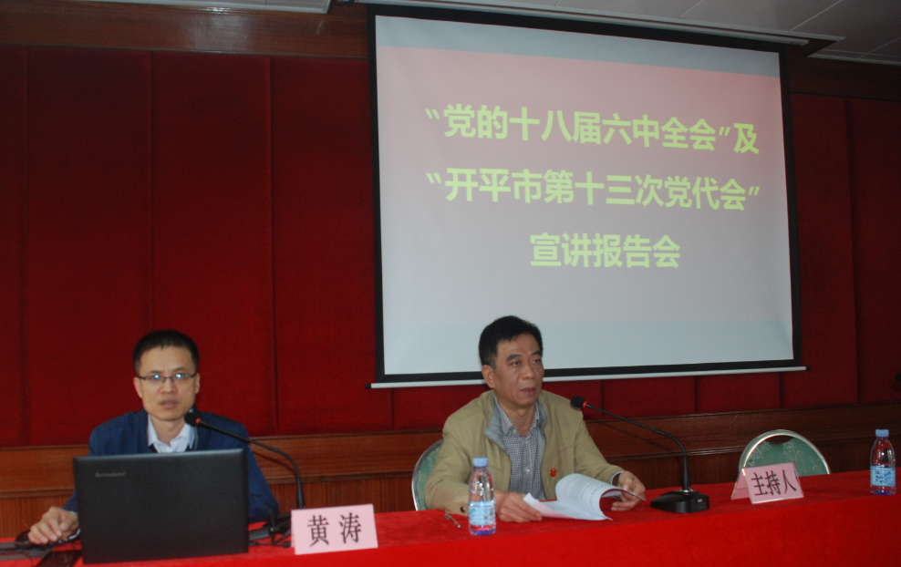 第十三次党代会”精神宣讲团成员黄涛老师作了宣讲报告。黄涛老师从党的十八届六中全会的重大意义、全面加强和规范党内政治生活、全面落实党内监督责任等三个层面,对党的十八届六中全会精神进行了深入分析和详细解读。同时围绕海棠直播