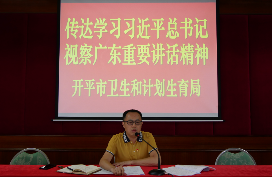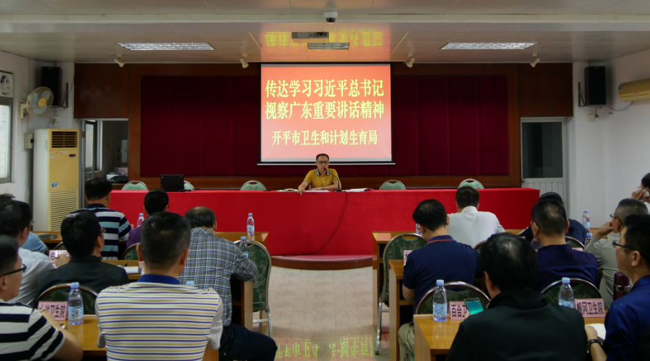 卫生计生局在六楼召开会议传达学习贯彻习近平总书记视察广东重要讲话精神和省、市有关会议精神。市卫生计生局党组书记、局长黄奕强主持会议。局全体党员干部、各医疗卫生单位负责人,共50余人参加。 会议指出,要深刻领会习近平总书记视察广东重要讲话的丰富内涵和精神实质,切实用以统一思想、指导实践、引领发展。一要深刻领会习近平总书记对广东工作的充分肯定和深切期望,把习近平总书记的肯定鼓励化为以习近平新时代中国特色社会主义思想指导一切工作、处理一切问题的政治自觉和行动自觉,精神更加振奋,意志更加坚定,奋力开创广东工作新局面。二要深刻领会习近平总书记提出的深化改革开放、推动高质量发展、提高发展平衡性和协调性、加强党的领导和党的建设四个方面重要要求,一条条认真梳理、一项项深入研究,扎扎实实推动落实,进一步完善工作思路、抓牢工作重点,把新时代发展的路子走对走实走好。三要深刻领会习近平总书记对广东发展寄予的殷切期望,切实提高政治站位,强化政治担当,更加自觉地扛起沉甸甸的历史责任,努力在新时代实现新作为作出新贡献,不辜负习近平总书记的信任和重托,不辜负广东父老乡亲的期望。 会议强调,要迅速兴起学习宣传贯彻热潮,确保学习贯彻习近平总书记视察广东重要讲话精神取得扎实成效。一要把学习宣传贯彻习近平总书记重要讲话精神作为当前和今后一个时期的头等大事和首要政治任务。各党组要从牢固树立“四个意识”、坚定“四个自信”、践行“两个维护”的高度,加强组织领导,精心制定方案,周密安排部署,迅速开展学习宣传贯彻工作。