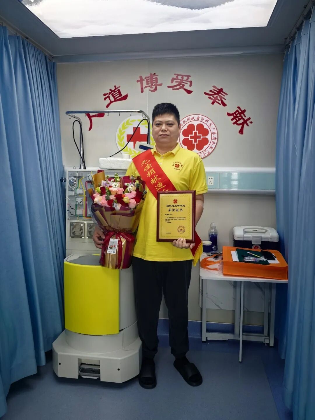 捐献当日,谢健勇前往南方医科大学珠江医院进行造血干细胞采集。经过数小时的采集,300毫升造血干细胞即刻被送出,为患者送上了“生命的礼物”。来自瀚蓝(开平)固废处理有限公司的谢健勇分享说:“公司常讲利他心,我觉得这不仅是我们瀚蓝公司倡导的,也是每个员工在面对生命垂危的陌生人时应有的做法,更是我作为退伍军人的使命感。”