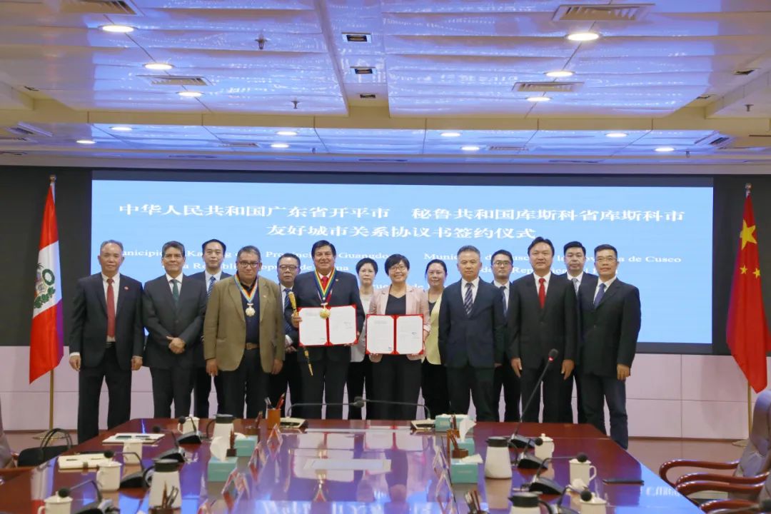 近日,秘鲁共和国库斯科省库斯科市市长路易斯·贝尔特兰·潘托哈·卡尔沃率团到访开平,并与海棠直播 缔结友好城市关系。