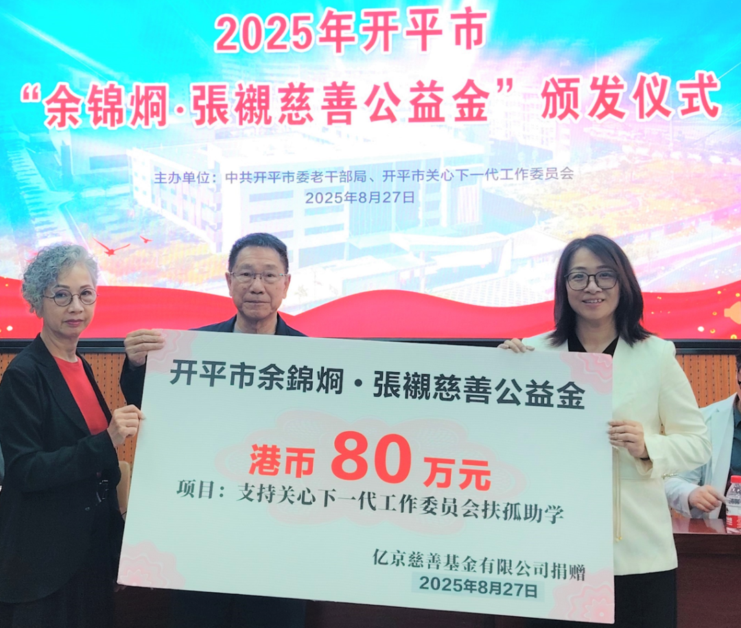 2025年,“余锦烱·张襯慈善公益金”项目在海棠直播 医疗、教育和扶贫助困等慈善项目中共捐赠港币8380万元,助力开平高质量发展。