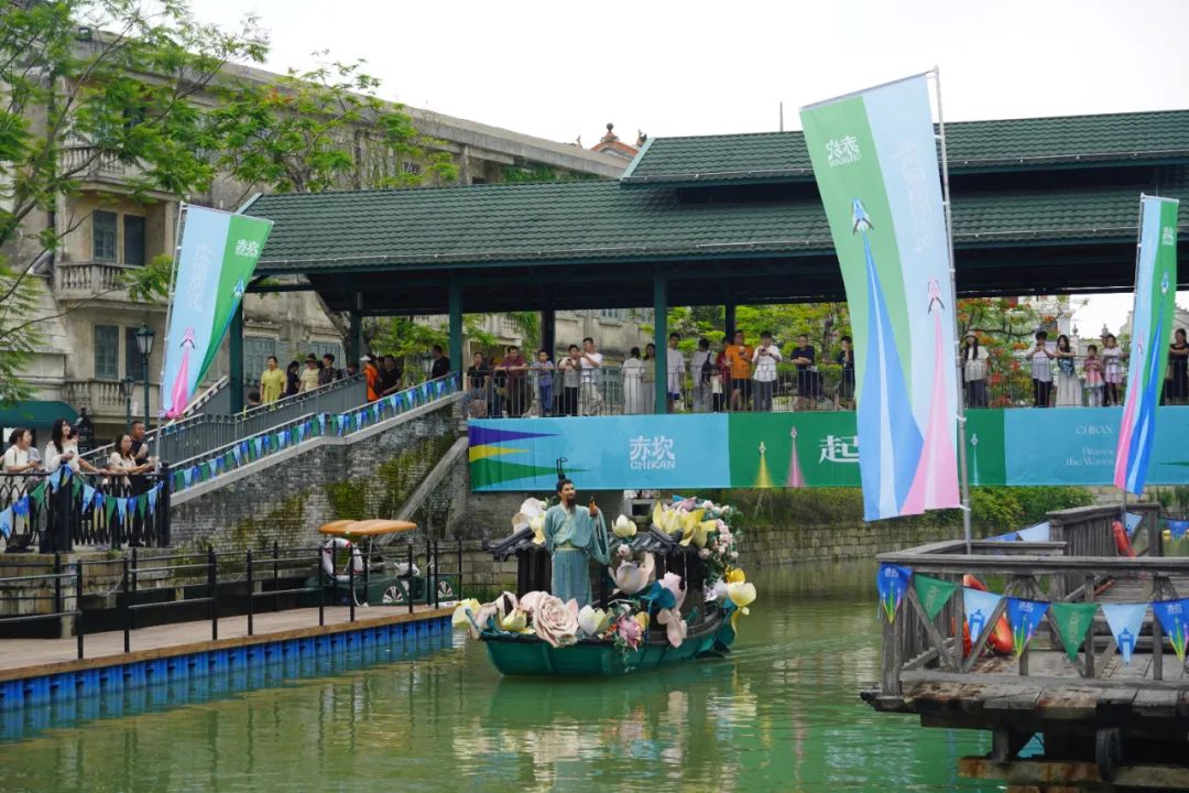 为了丰富群众游玩体验,赤坎华侨古镇还将传统端午习俗融入体验新场景,设置了粽夏园游会、屈子清友奇遇记活动,既有朱砂点额、艾草扫身等体验,又有猜粽字谜、趣味投壶等游戏,更有“屈原”游江遥送祝福等扮演者巡游,吸引了不少游客参与到互动中来。