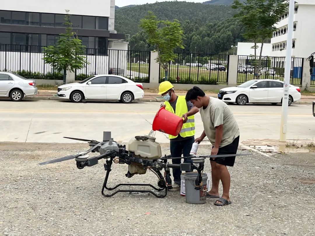 作为新兴的病媒生物控制技术,无人机在蚊媒防控中具有灵活高效的优势,能快速覆盖大面积区域,均匀喷洒卫生杀虫剂。消杀活动采用“无人机+人工”方式进行,人工消杀聚焦无人机难以触及的角落,进行精细化处理,形成“空中+地面”的协同防控,彻底清洁蚊虫孳生的温床。
