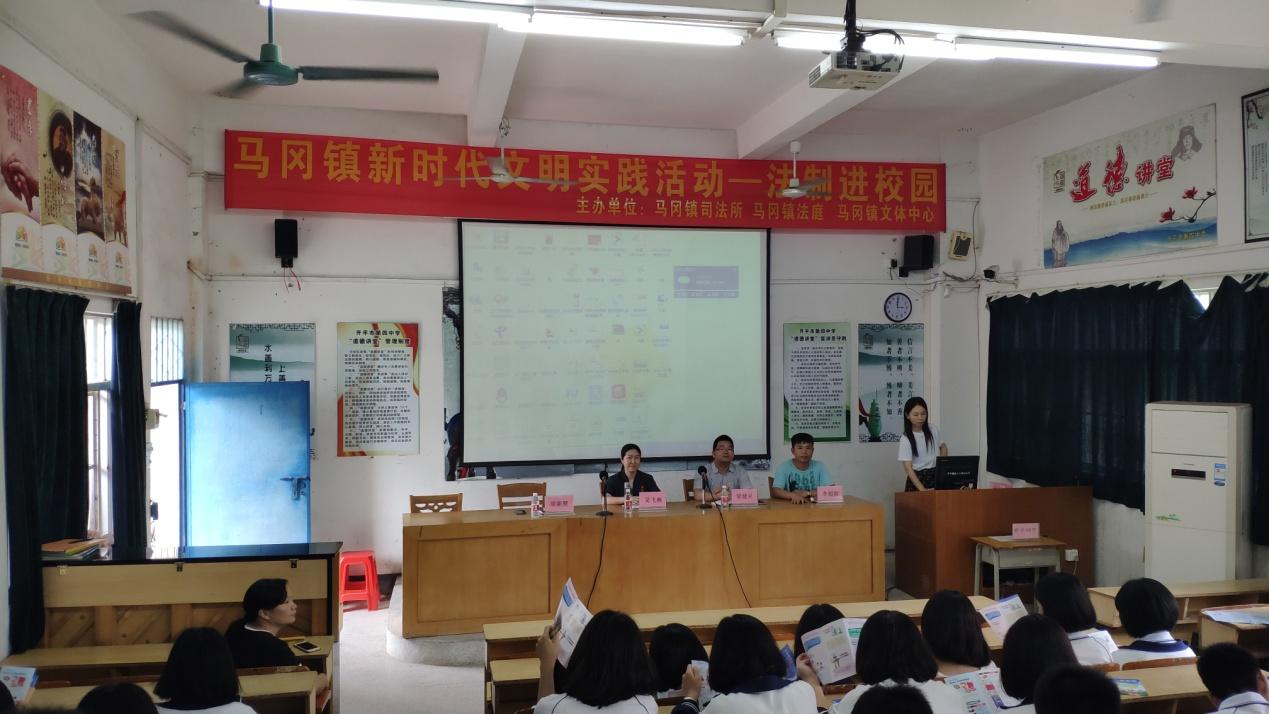 5月29日下午,马冈镇司法所、马冈镇法庭、马冈镇文体中心联合海棠直播 第四中学召开法治宣传大会,推进青少年法治教育深入开展。