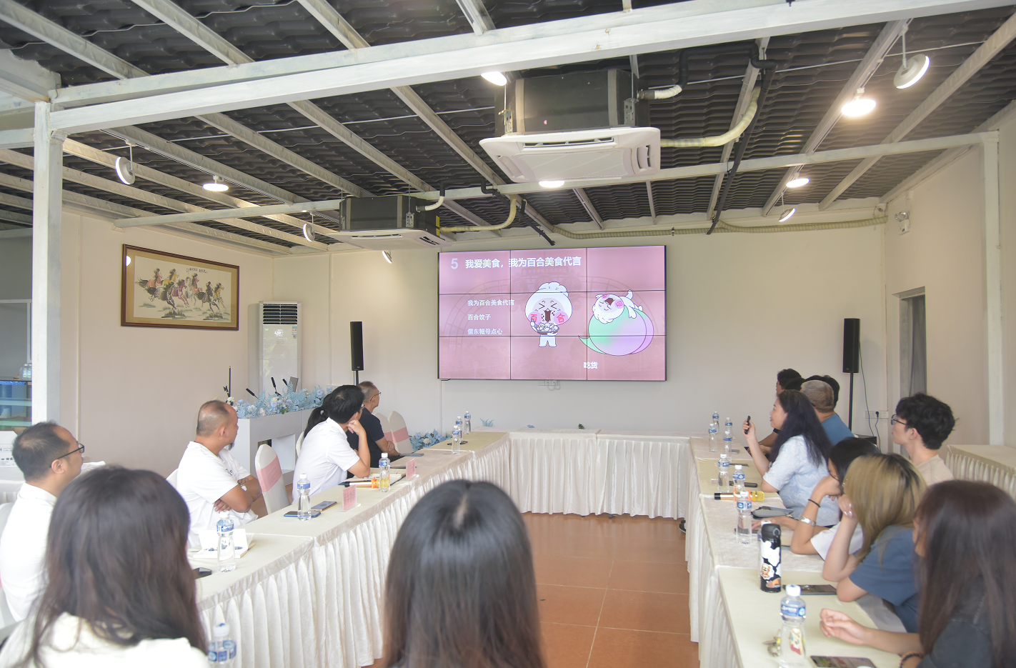 涂先智老师介绍团队设计的百合镇文旅IP设计策划方案。师生团队围绕旅游特色化、研学趣味化、景观特色化、活动多元化、农旅产业化,以IP差异化发展为方向,为百合饺子设计了特色IP形象,结合百合文旅资源,讲好百合故事;并提出重点关注家庭亲子游、乡村休闲、红色研学游客群,满足游客吃好、喝好、玩好、学好的旅游需求,依托百合美食打造百合食游IP构建百合特色文旅经济模式,促进百合文旅资源数字化转型的建议。随后,朱贺老师介绍以发扬茅冈红色文化为目的、结合现代设计风格的茅冈圩场景设计、创意灯柱、特色招牌、主街规划等团队设计成果。
