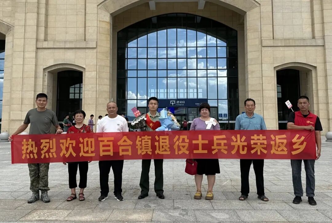 昔日从军报国,今朝“戎”归故里。为用心用情迎接2025年秋季退役士兵光荣返乡,进一步增强退役军人的荣誉感、归属感、自豪感。9月1日,百合镇、村(社区)两级退役军人服务站设置返乡接待站,组织开展秋季退役士兵返乡欢迎活动。