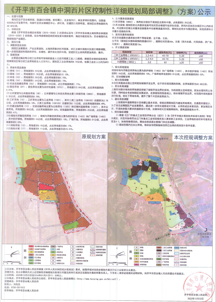规划方案位置:规划区位于百合镇西部,国道G325西侧,西邻潭江,北至宝兴村,南至茅冈村范围内,沿国道G325向北可至恩平市,向南可至百合镇镇区中心、赤坎镇,交通区位优势明显,规划区总用地面积为60.68公顷。