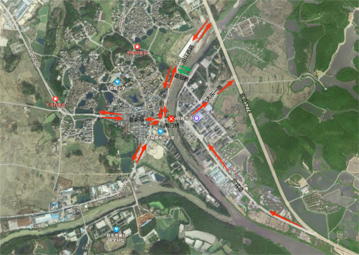因苍城镇南门桥重建,为确保施工顺利实施和过往车辆以及行人安全,需对南门桥进行封闭施工,现通告如下: 一、封闭施工时间 2021年12月6日至2022年3月16日 二、施工期间绕行路线 禁止一切大型车辆从迎宾路、苍新路、沿江西路、乡道Y757等方向驶入苍城圩范围。其他过往车辆如从迎宾路驶入的,请从迎宾路→大东一路→省道S274方向绕行;如从苍新路和乡道Y757驶入的,请从苍新路(乡道Y757)→沿江西路→省道S274方向绕行。请广大群众尽量选择绿色出行,步行至嘉冠景观桥绕行。 三、温馨提示 施工期间,该路段将实施交通管制,请过往车辆遵照施工现场标志,配合现场人员指挥有序通过,文明出行。不便之处,敬请谅解。 特此通告。 海棠直播