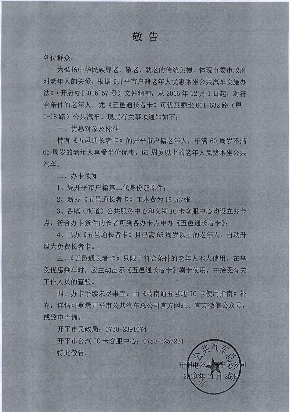 关于办理五邑通长者卡的通知