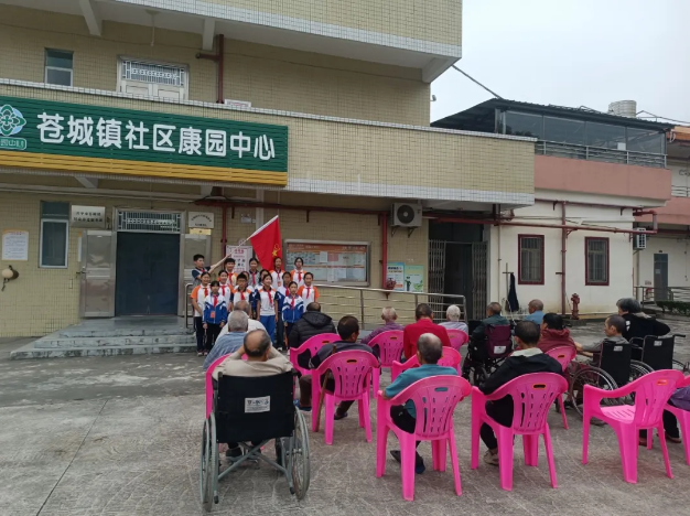 第八中学的师生代表带着满满心意到颐养院开展探望慰问活动。活动中,学生们以稚嫩却真挚的声音为老人们演唱经典歌曲,用朗朗上口的旋律传递敬老爱老之情,并向老人们献上最诚挚的节日祝福;师生们还主动与老人们亲切唠家常,耐心倾听老人的心声,同时为每位老人送上精心准备的慰问礼品,将关怀与牵挂切实送到老人心坎上。老人们接过饱含心意的礼品,脸上满是开心的笑容,现场氛围温馨融洽、其乐融融。 活动尾声,学生们化身“小小志愿者”,在颐养院大院及门口开展卫生清洁工作,认真清扫落叶、捡拾杂物,用实际行动为老人们营造干净整洁的居住环境。此次重阳敬老关爱活动,不仅让老人们感受到了节日的温暖与社会的关怀,更在青少年心中播下了敬老爱老的种子,进一步浓厚了全镇尊老敬老的良好社会风尚。 下一步,苍城镇将继续关注老年人群体需求,举办形式多样的养老服务活动,以实际行动为老年人群体送去更多欢乐和关爱。