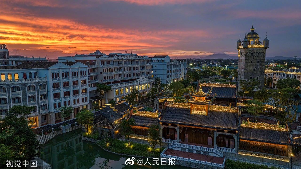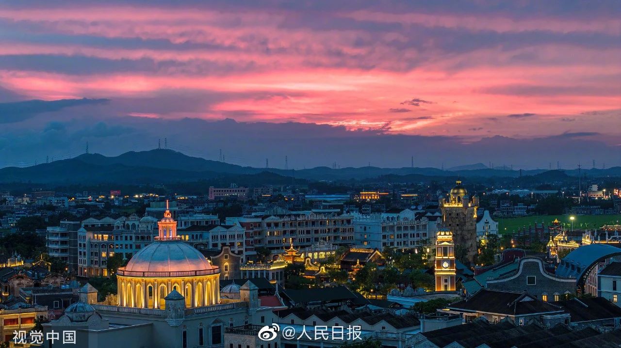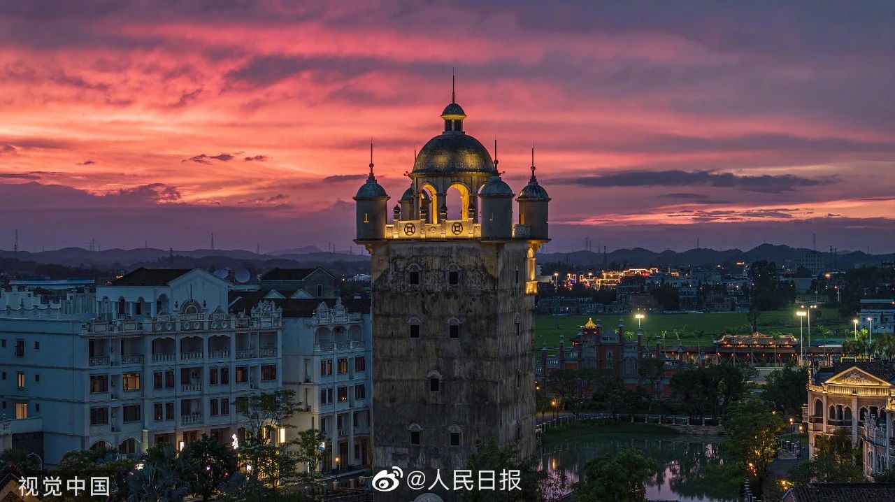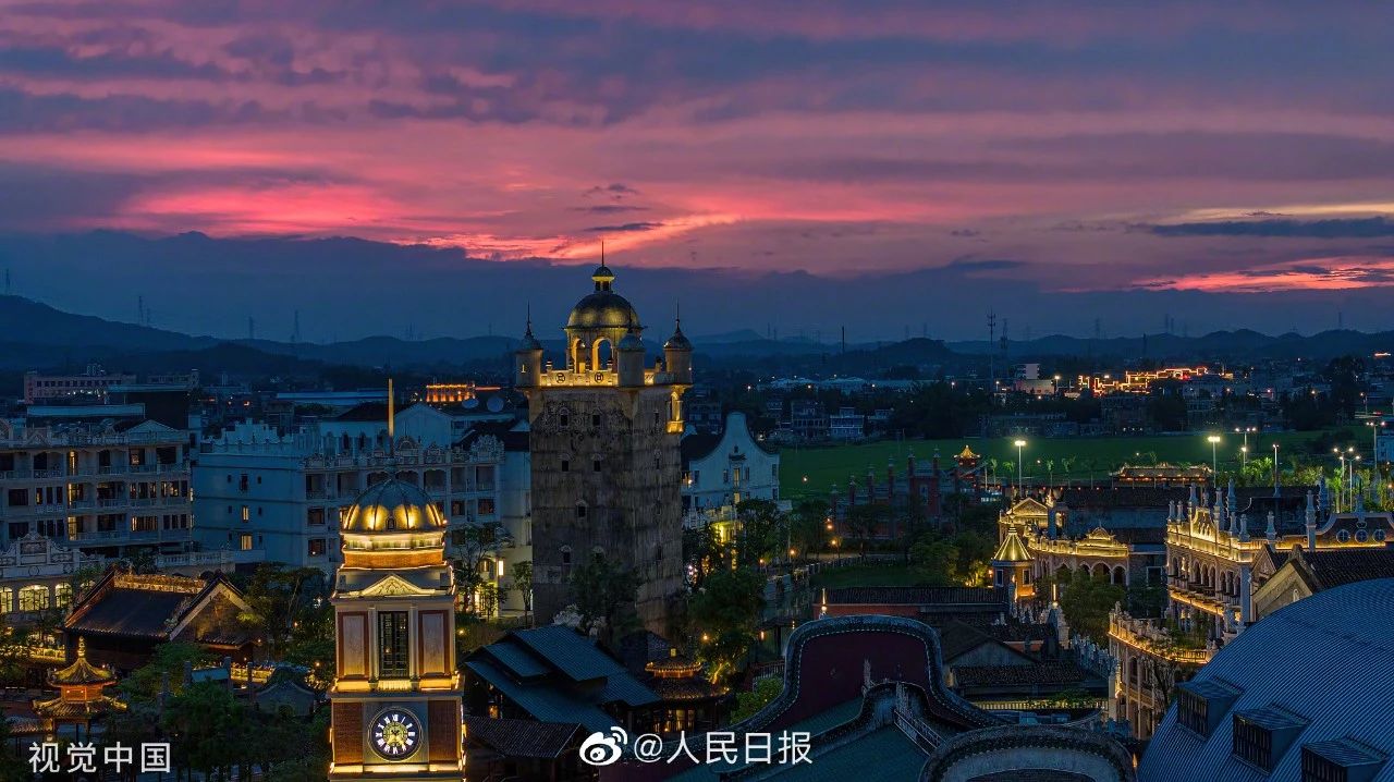 6月8日晚上,人民日报微博登出了开平赤坎华侨古镇上空的火烧云美景,在火烧云的映衬下,赤坎华侨古镇显得格外迷人。