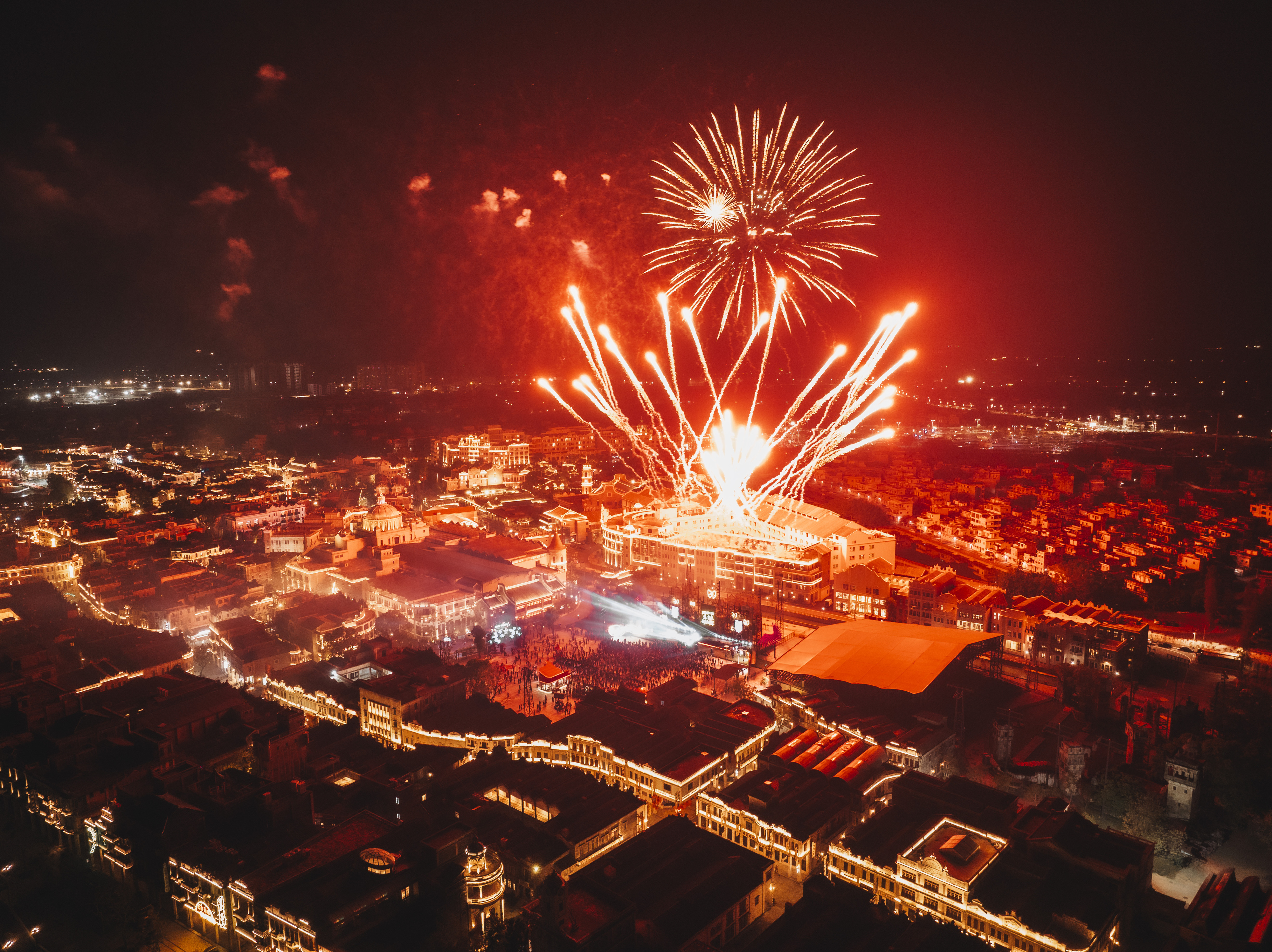 拥有370多年开埠历史的赤坎华侨古镇,现存680多座骑楼,是全国规模最大、界面最连续、保存最完整的侨乡骑楼建筑群,华侨文化底蕴深厚,是江门市唯一的中国历史文化名镇。今年春节,重磅烟花、万人放飞气球、非遗大戏、全财神矩阵......活动精彩纷呈,游客可漫步于百年骑楼之间,感受历史街区与新春节庆的完美结合。