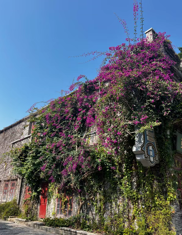 近日,持续的晴好天气让开平的暖冬绿意盎然。赤坎华侨古镇里三角梅、炮仗花、铁冬青等花木竞相绽放,绚丽繁花与古朴的碉楼、骑楼相映成趣,勾勒出侨乡独有的冬日浪漫,更成为游客逃离喧嚣、享受慢生活的治愈之地。