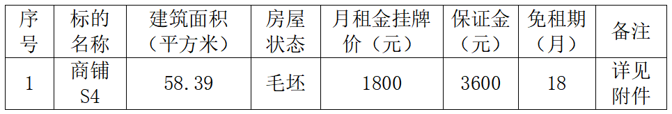 4、租金:租金按成交价确定,自签订租赁合同之日起计算,租金每三年递增5%。