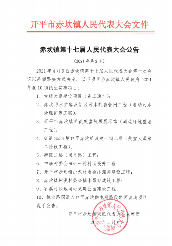 赤坎镇第十七届人民代表大会公告