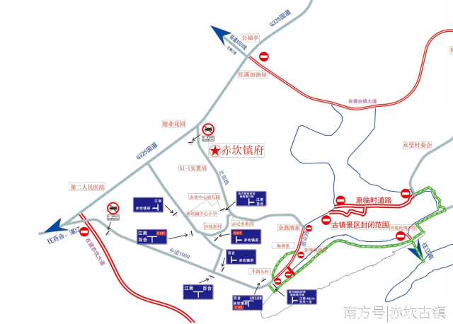 1、在金燕酒家和海塘里村口处设置路障以及指引标识等交通引导标志,禁止所有社会车辆通行。