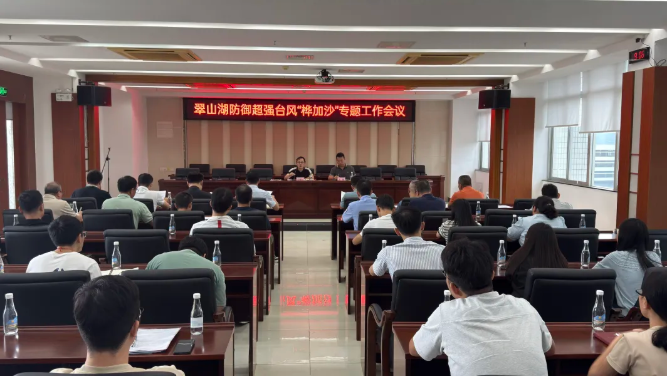 台风“桦加沙”强度极强、风圈范围大、具有极端性,强度堪比风王“山竹”,是近年以来影响我市的最强台风,将带来严重风雨影响,防汛防台风形势非常严峻。9月22日上午,翠山湖迅速召开防御超强台风“桦加沙”专题工作会议,研判台风防御形势,全面动员和部署当前台风防御各项工作,充分认识当前防风形势的极端严峻性和复杂性,立足最不利情况,要求以最高标准、最严要求、最硬措施做好防范应对,提前做好防巨灾、抢巨险工作,全力确保人民群众生命财产安全。翠山湖管委会主任张健钊,以及翠山湖管委会、公共服务中心、集团公司党员干部参加会议。
