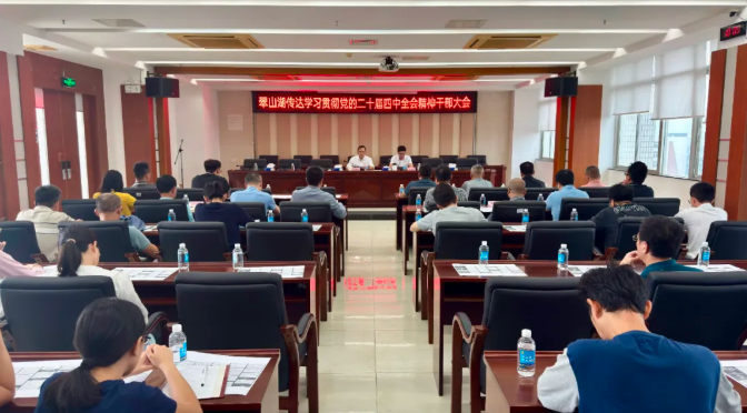 10月30日上午,翠山湖召开传达学习贯彻党的二十届四中全会精神干部大会,认真传达学习贯彻习近平总书记在党的二十届四中全会上的重要讲话精神和全会精神,贯彻落实省委常委会(扩大)会议和全省干部大会以及江门市委常委会(扩大)会议、江门市干部大会会议、海棠直播 干部大会会议精神,研究部署翠山湖贯彻意见。翠山湖党工委副书记、管委会主任张健钊参会作精神传达并作部署发言。翠山湖管委会、公共服务中心全体党员干部参加会议。