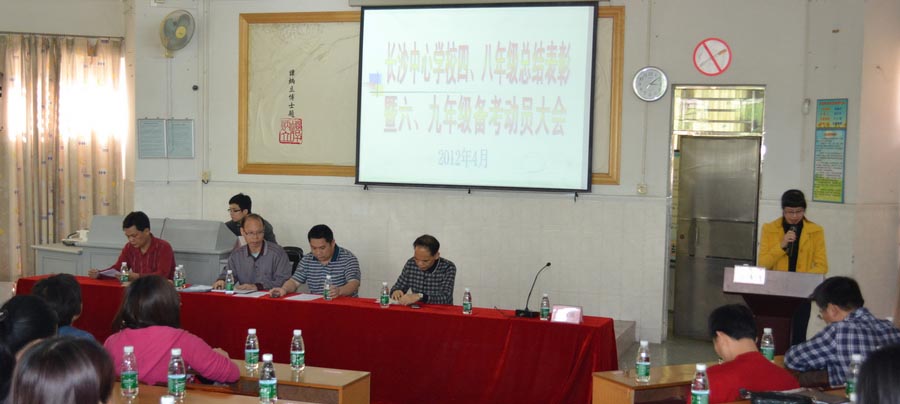 4月9日下午,长沙街道办事处中心学校在谭宏帙纪念小学召开2012年教学工作总结表彰大会,对上学期取得优异教学成绩的学校和教师进行奖励。长沙中心学校全体干部、长沙各学校校长、教导主任以及教师代表等110多人参加了本次会议。