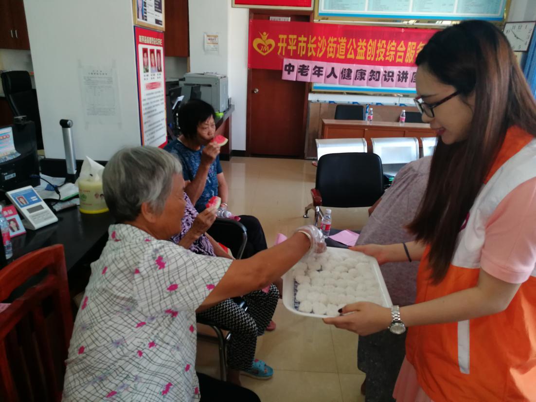 长沙街道公益创投综合服务项目在东升村开展中老年人健康知识讲座。 本次活动有30多名长者报名参加。在活动中,由项目健康宣讲员从夏季良好习惯的养成、体质辩证调理、脂肪肝、夏季饮食的原则等方面深入浅出地讲解老年人夏季养生知识,并与长者们分享了养生保健方面的心得。最后,社工还带来了由素智源斋馆提供的素食点心和长者们进行分享,倡导健康养生理念。 此次健康知识讲座通俗易懂,贴近居民生活,受到了老年人的一致好评。老人们纷纷表示,参加这样的讲座很受益,学到很多预防疾病的知识,又提高了自我保健的意识,对构建健康和谐的家庭具有积极的意义。 健康宣讲员向活动参与者派发健康知识宣传单 健康宣讲员与长者们分享健康养生心得 与长者们分享素食点心