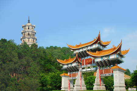 领导和一大批华侨华人同胞的努力,通过政府划拨巨款和侨胞捐赠巨资,先后投入700多万元,对这两座文物建筑进行了修葺和整固,令其焕然一新,又在金章阁内增设了孔子大型铜塑像,还在马山兴建了园林、入口牌楼、上山石级、风亭、碑廊、名人廊、绿化区、停车场等旅游景观和设施,建成了一座占地2万平方米的崭新的开元塔纪念公园,使其成为了开平花园城市的又一个集纪念、游乐为一体的风光名胜旅游景点。 历史开元 开元塔,位于长沙楼冈马山。开元塔高7层,占地面积49.1平方米,始建于清乾隆16年(1751年),原名“文塥”塔。据《开平县志》载,乾隆十六年(1751年),四川省南溪县举人叶秀重到开平任知县。叶认为马山是开平的门户,倡议在山顶上建一座5层高的“文笔”,以振兴开平的人才。“文笔”建成后不久,开平果然出了10多个举人。 文笔塔建成后,开平科举小有崭获,但仍无大的建树。据民间传说,1843年,县令张帮泰(江西吉水人)认为开平之所以未出名人,主要是文笔塔太矮。因此,张县令召集工匠将“文笔”加高两层,使之与苍城学宫的地阶相齐,构成凤凰展翅飞天之势。据县志记载,张县令还将文笔塔底层封闭,并规定:不出状元就不能开塔底的门。文笔塔扩建期间,已经苦读十年寒窗的开平赤坎联塘东溪村人司徒煦于道光癸卯科年间钦点传胪翰林院庶吉士(即殿试第四名),为开平的科举史开创了新局面,因此“文笔”便改名为开元塔。但由于开平始终没有出过状元,故该塔塔门一直不曾开启,封闭至今。塔里面有没有藏东西?藏了些什么?则成了一个谜。 1946年,楼冈人吴尚志任开平县长,倡议重修开元塔和金章阁,使其恢复旧观。这一倡议,得到当地人们的支持和海外侨胞的囊助,终于把它修复。但又经历了数十多个春秋,一次雷雨大作,塔顶的塔刹“铜葫芦”被失落而散失。1984年文物普查时,得知被雷电击落的塔顶“铜葫芦”为当地群众拾回收藏,便征集回县保管(现藏于县华侨博物馆)希望有朝一日重修此塔时,持“铜葫芦”重置塔顶,使其重展当年的雄姿。1999年,海棠直播