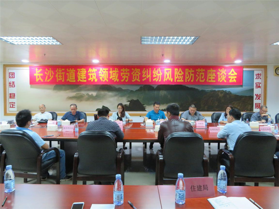 4月26日下午,市人社局、市住建局、长沙街道办事处联合举办我市长沙辖区建筑项目开发商座谈会,通过搭建交流平台的方式,与建筑行业开发商加强沟通,从源头上预防劳资纠纷风险隐患,减少劳资纠纷的发生。