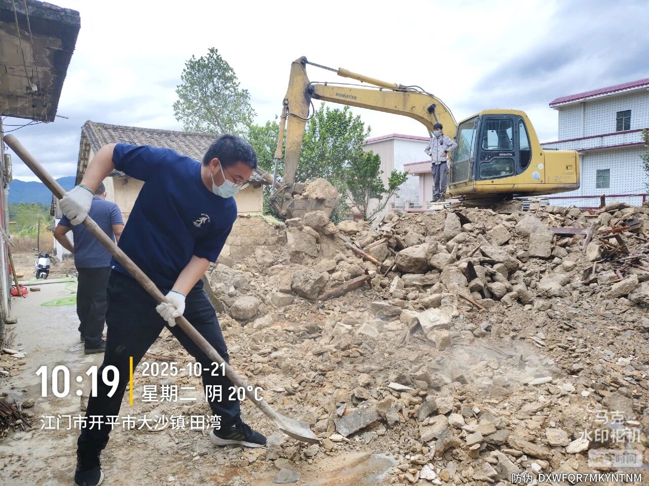 10月15日,《大沙镇危破空置房拆除经费奖补工作方案》一经发布,新星村迅速响应,第一时间集结驻村工作队、村“两委”干部、在村党员及村民志愿者约20人组建党群攻坚队,召开专题会议部署危破空置房拆除工作。“党员先上、干部带头”成为攻坚队的行动准则,20名队员迅速明确分工,细化责任清单。为抢抓进度,大家主动放弃周末休息,白天顶着烈日作业,晚上挑灯夜战推进后续清理,用“5+2”“白加黑”的实干精神,拉开拆危攻坚序幕。